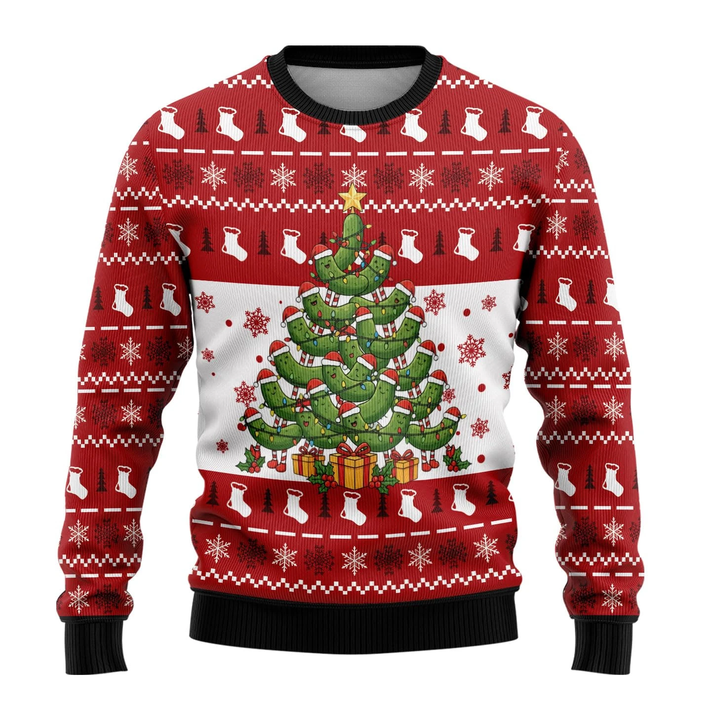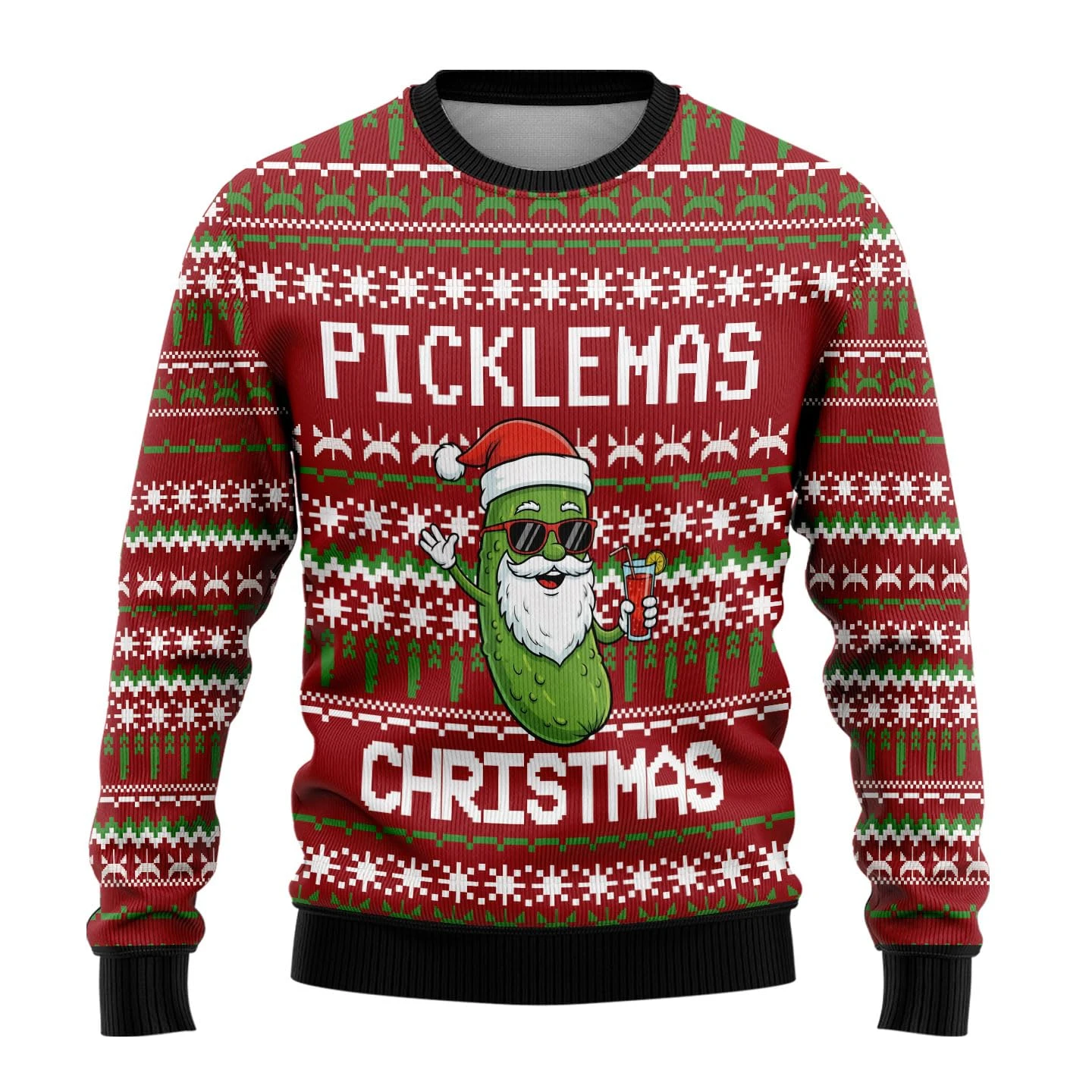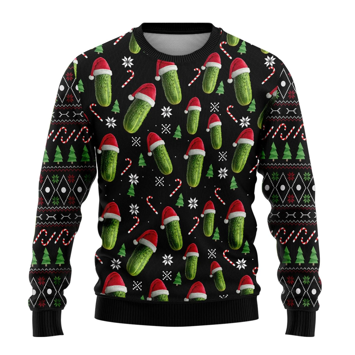 Funny Cartoon Pickle Party Ugly Christmas Sweater For Women Men Clothes Harajuku Fashion Mens Sweatshirt Holiday Jumper Sweaters